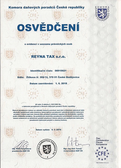 Sbírka listin společnosti REYNA TAX s.r.o.